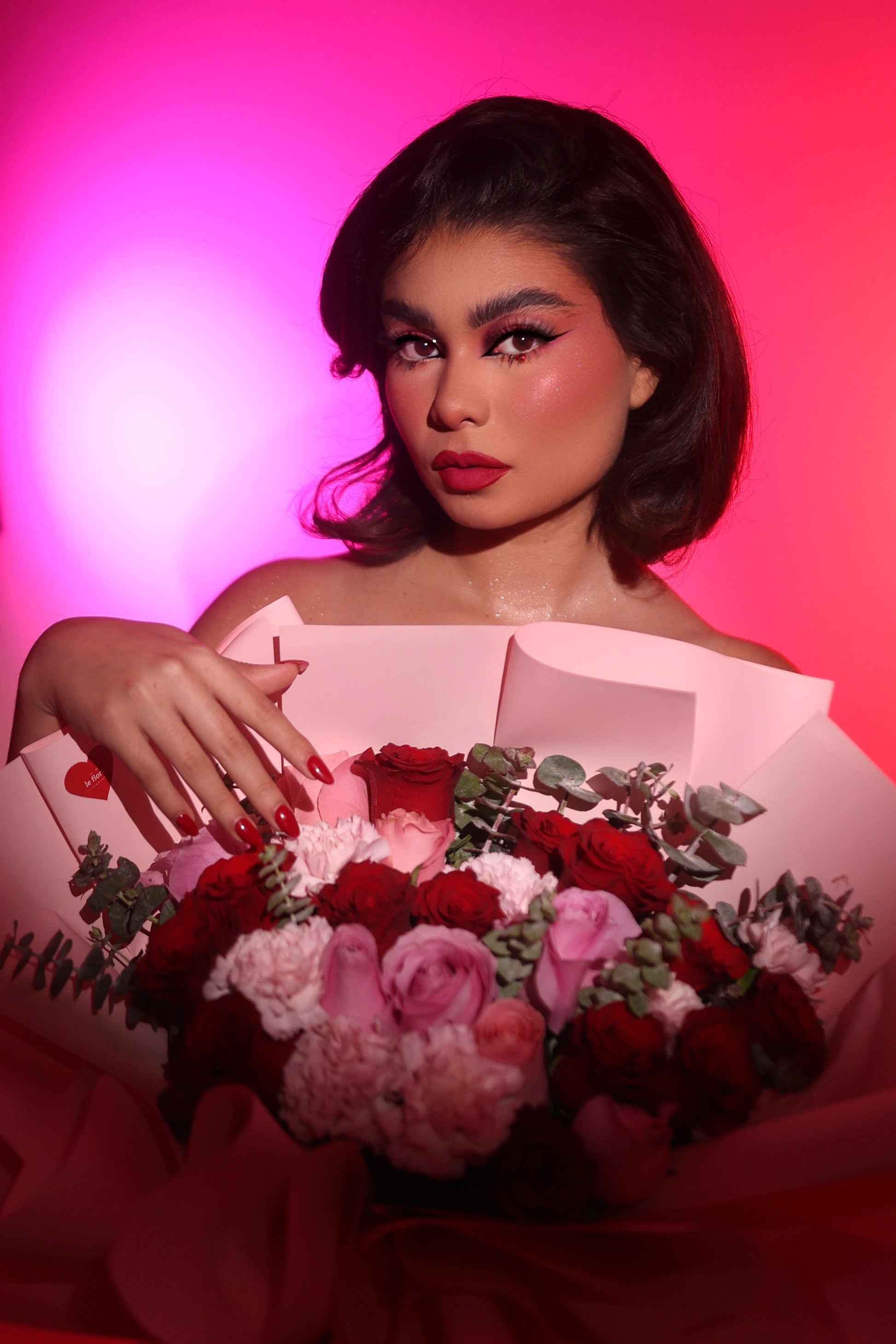 Ramo de rosas y claveles.